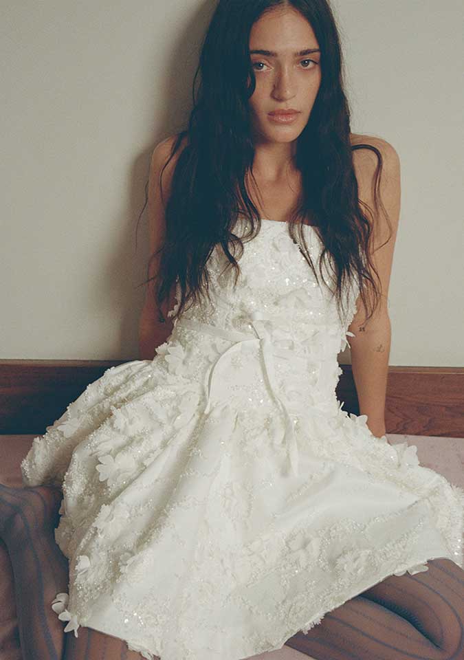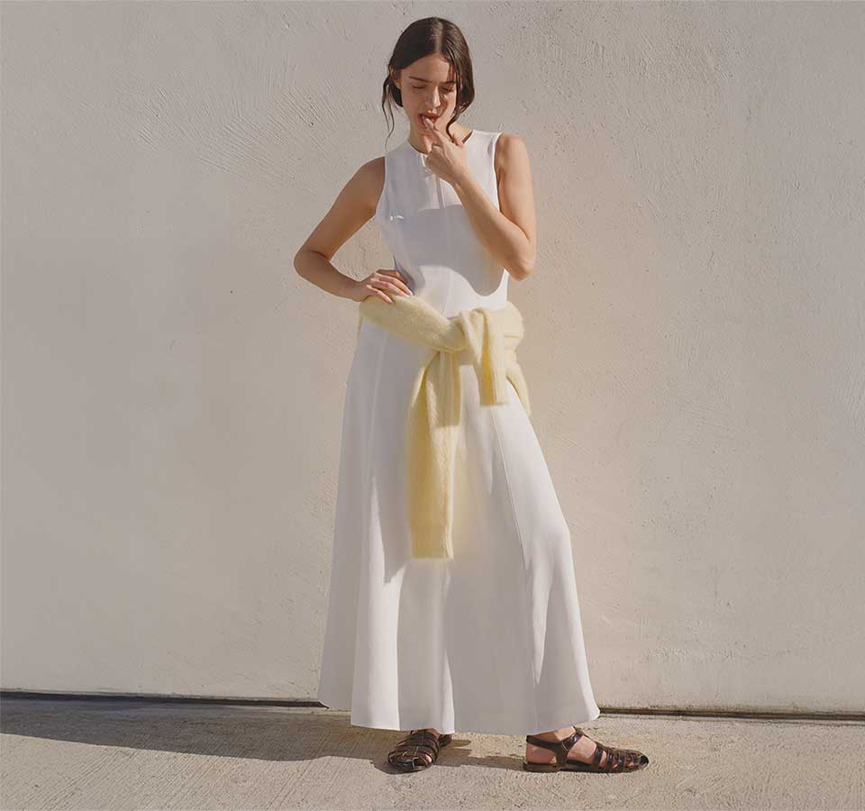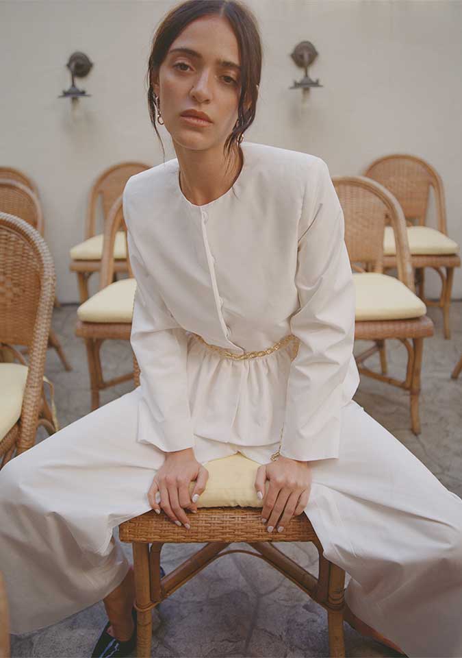 The collection revisits white through iconic cuts and a relaxed attitude — a quest for perfect lines, precious fabrics, and embroidered details that add a touch that is both cool and glamorous.